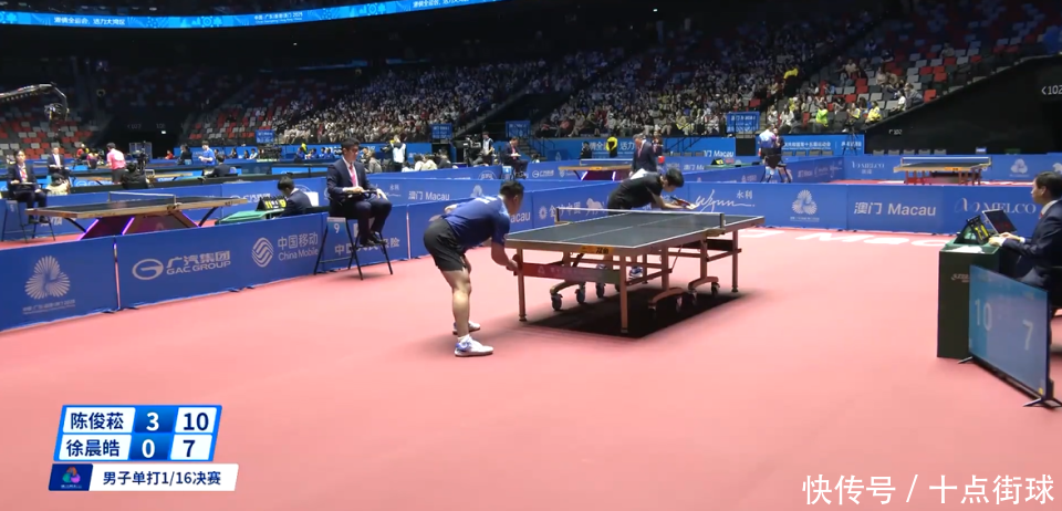 北京时间11月10日,在刚刚结束的第十五届全运会乒乓球男单1/16决赛中,福建小将陈俊菘以4-0的绝对优势战胜北京队徐晨皓,顺利晋级16强,四局比分(11-5、11-3、11-3、11-7)充分展现了他在场上的统治力,其中第二、三局他仅让对手各得3分,比赛耗时极短,被观众调侃为“首个下班选手”,然而更让人喜欢陈俊崧的是,赛后他再一次提到了“拼”字